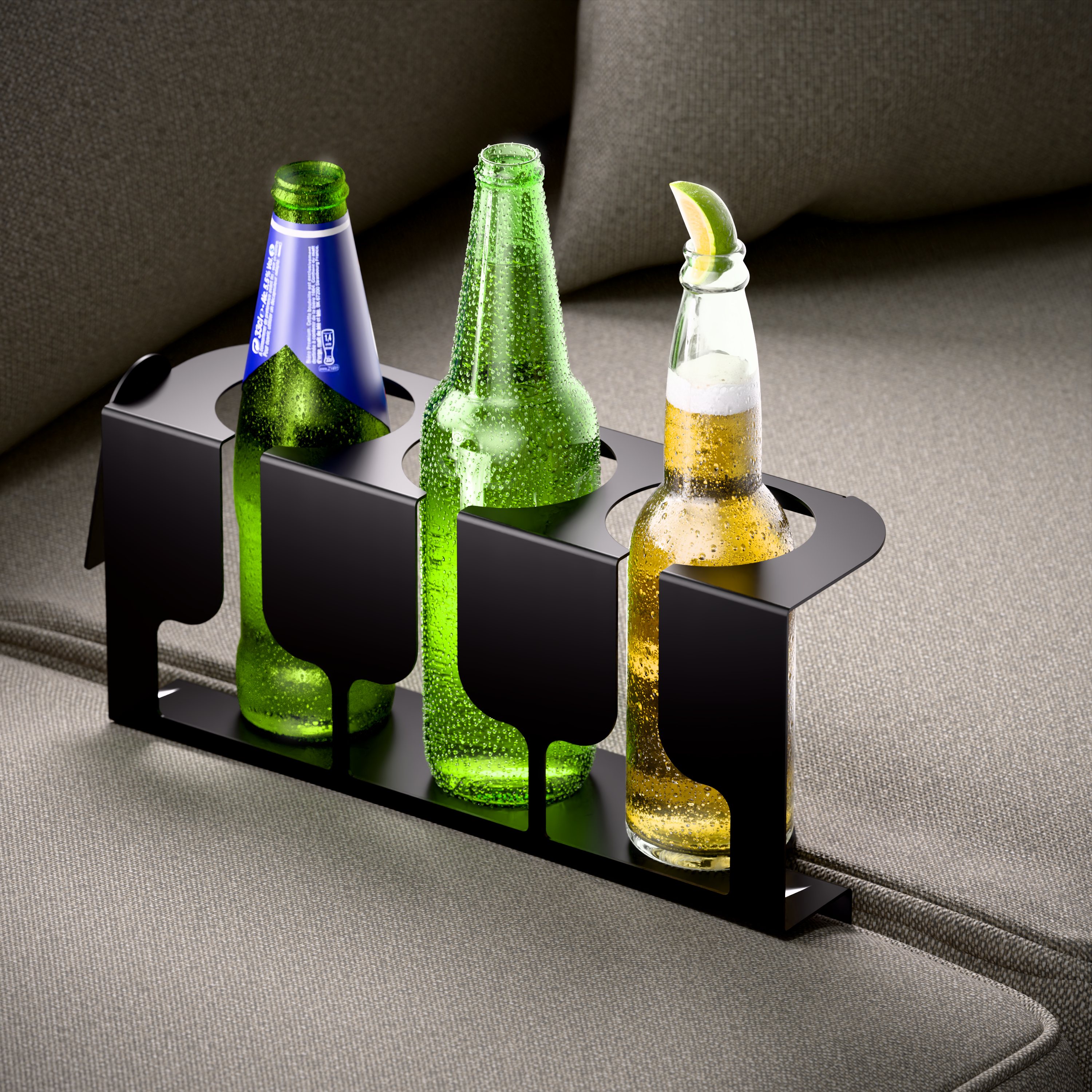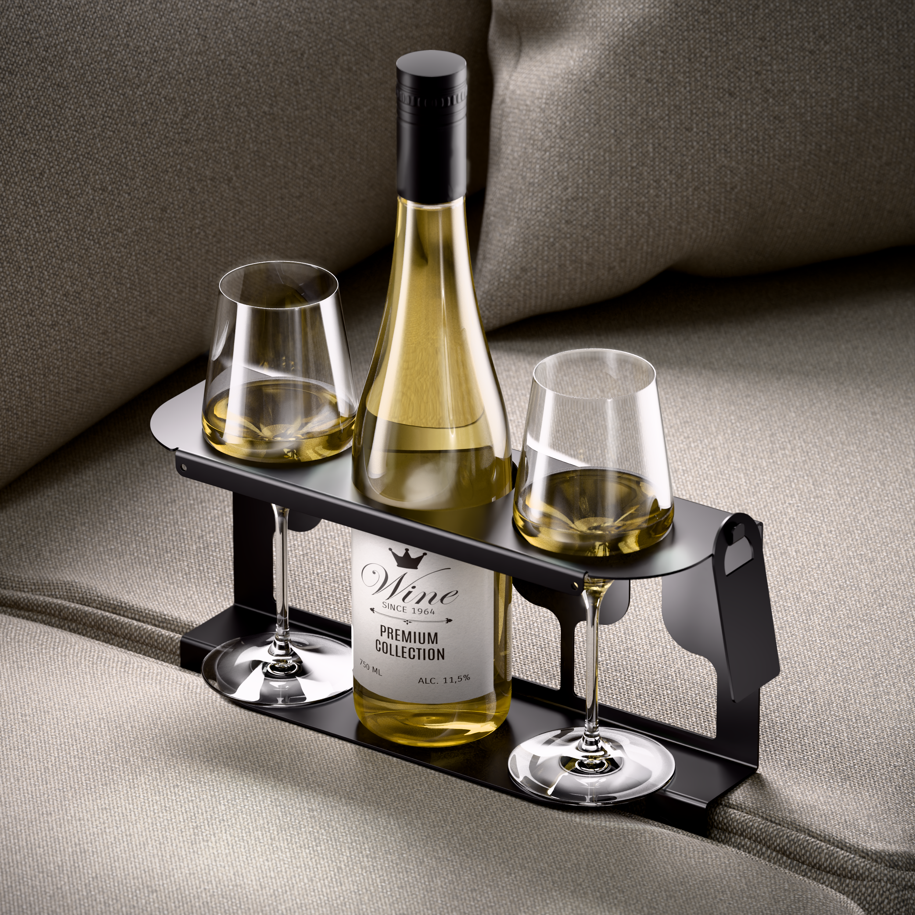 Dieser edle rutschfeste Getränkehalter aus pulverbeschichtetem Metall ist speziell für Weinliebhaber entworfen. Er bietet Platz für eine Flasche und zwei Gläser – perfekt, um den Feierabend in Ruhe zu genießen.